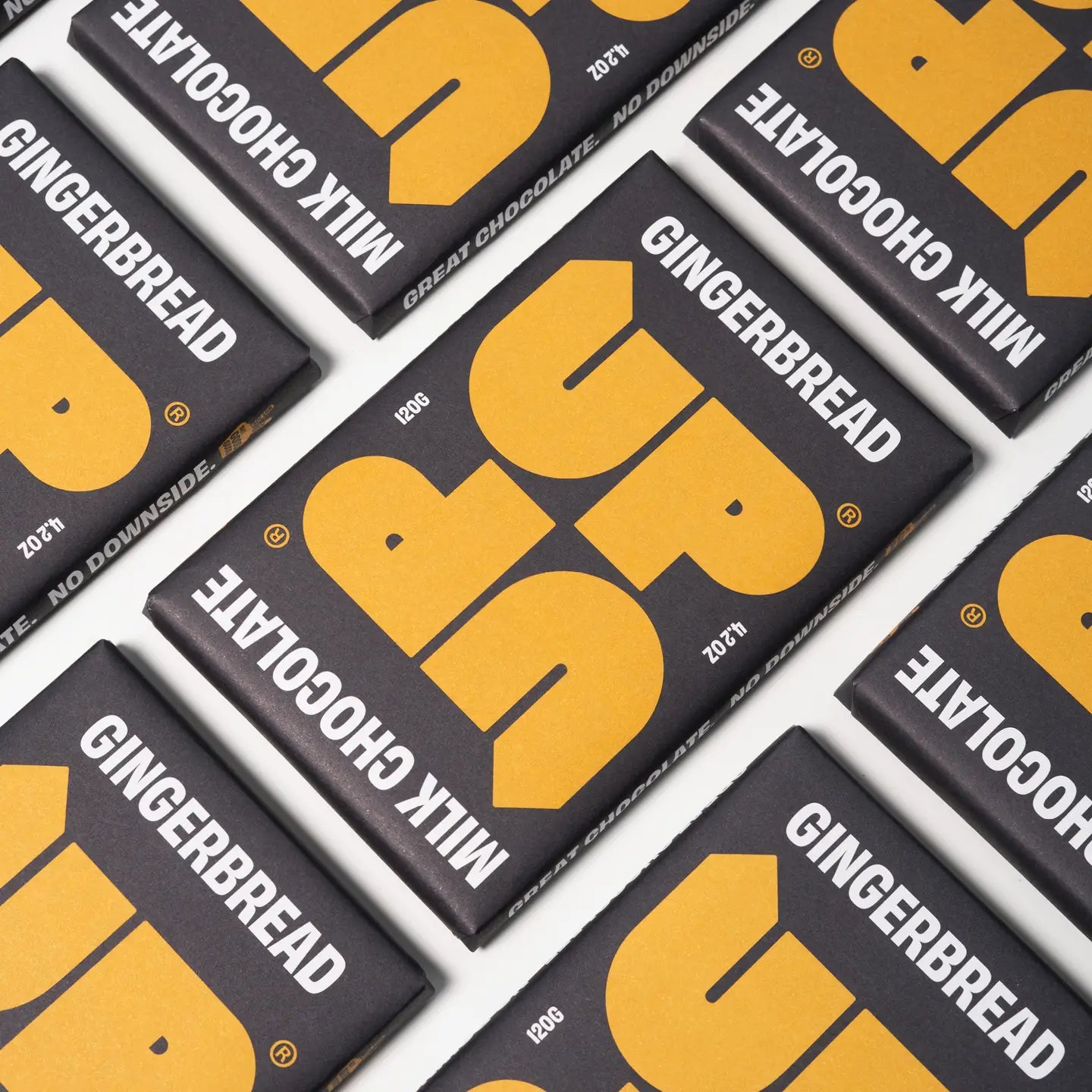 UP-UP Gingerbread is a milk chocolate Single Estate 35% cacao content made with fine flavour cocoa beans with ground ginger and cinnamon, that surprises our senses with each bite. With their warmth, the woody and spicy notes of ginger and cinnamon create the perfect balance with the creaminess and the cocoa flavours for the perfect indulgence.