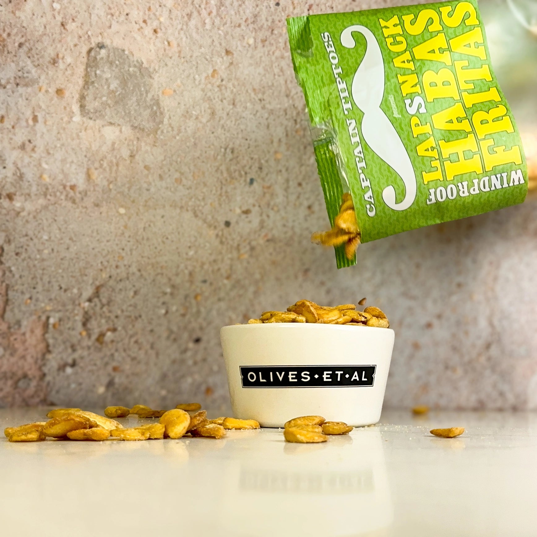 Olive Et Al's award winning roasted and lightly salted Broad Beans from Spain. Wheat free. Fried and Roasted broad beans – truly taste nothing like the uncooked type… These are fried, roasted and tossed with a little salt so you eat them like crisps or snacks or, if you fancy it, heat some infused oil from our olives in a pan and flash fry a handful for a hot and more flavoursome version – be experimental… 201g, 7oz