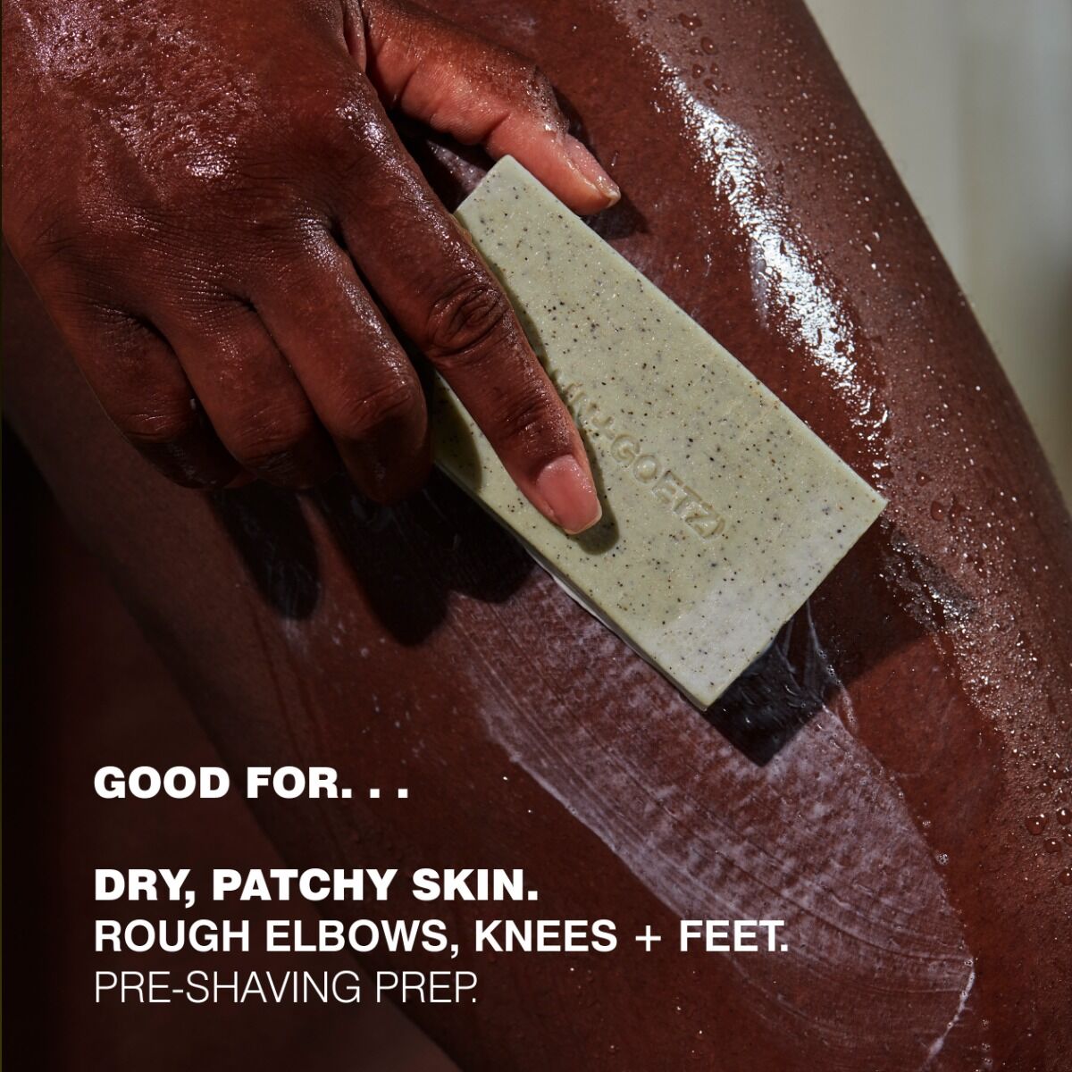 an exfoliating + cleansing 140g bar powered by physical + chemical exfoliants and restorative eucalyptus to reveal smoother, softer skin.
