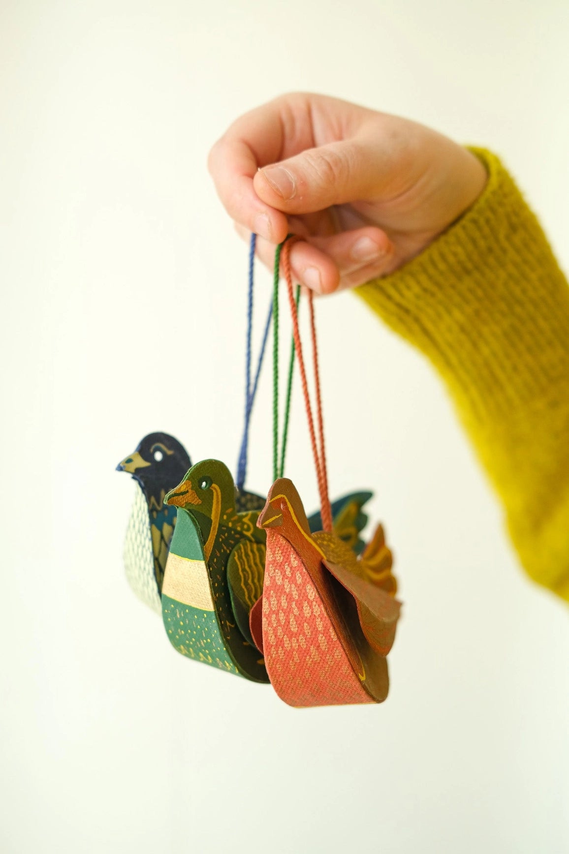 Screen printed board ornament, sustainably made from 100% recycled paper.