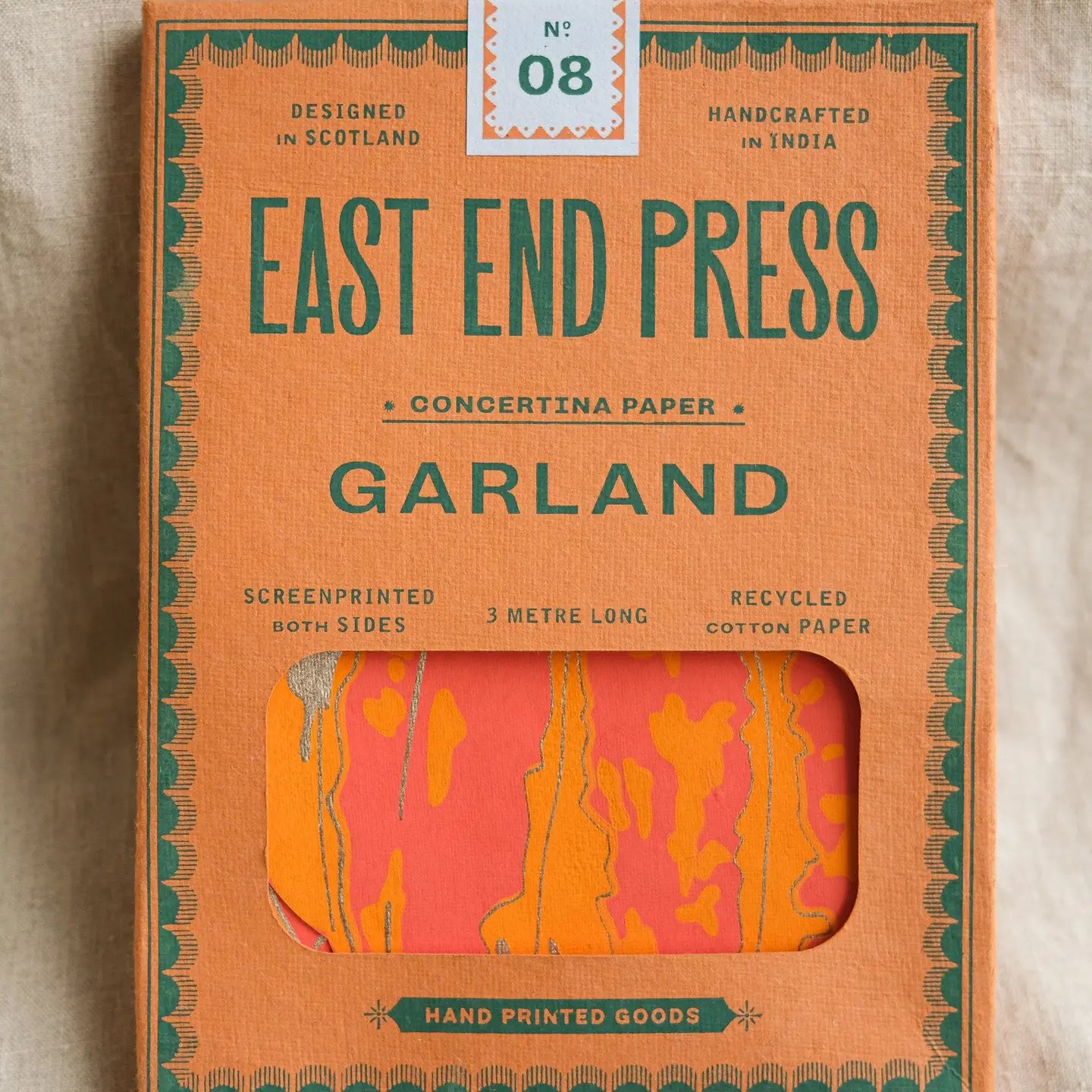 A concertina folded paper garland featuring squashes, gourds and pumpkins, perfect for Autumn time! This garland is hand printed on both sides, and made from thick handmade paper created from entirely recycled content.