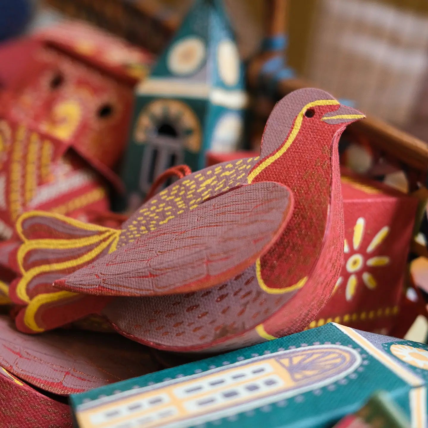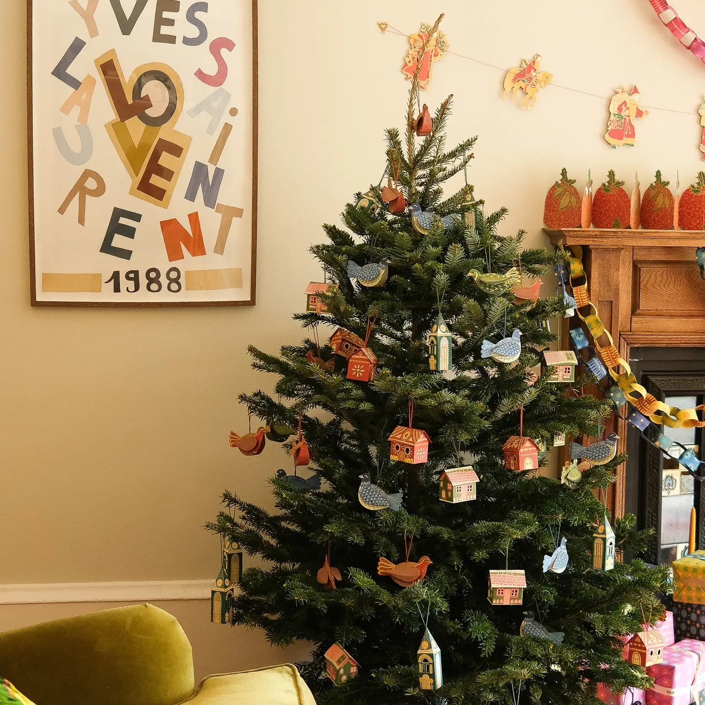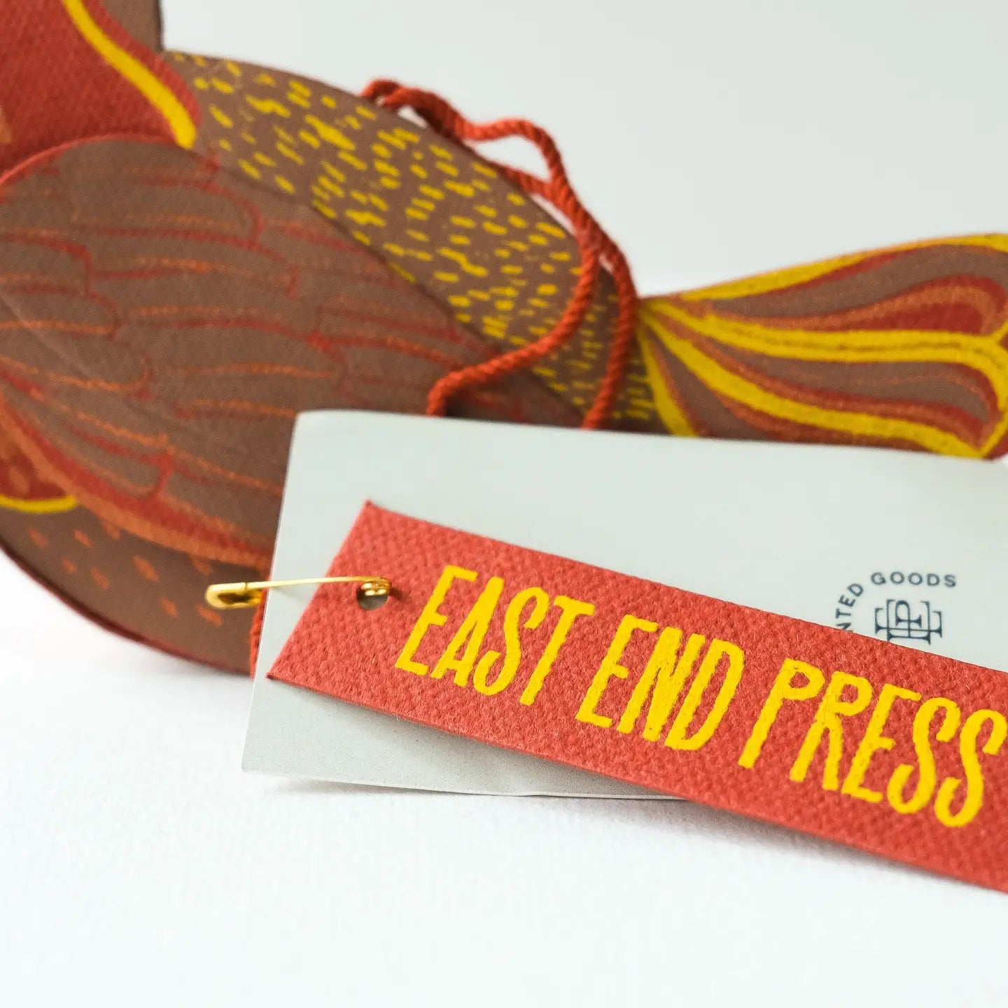 Screen printed board ornament, sustainably made from 100% recycled paper.