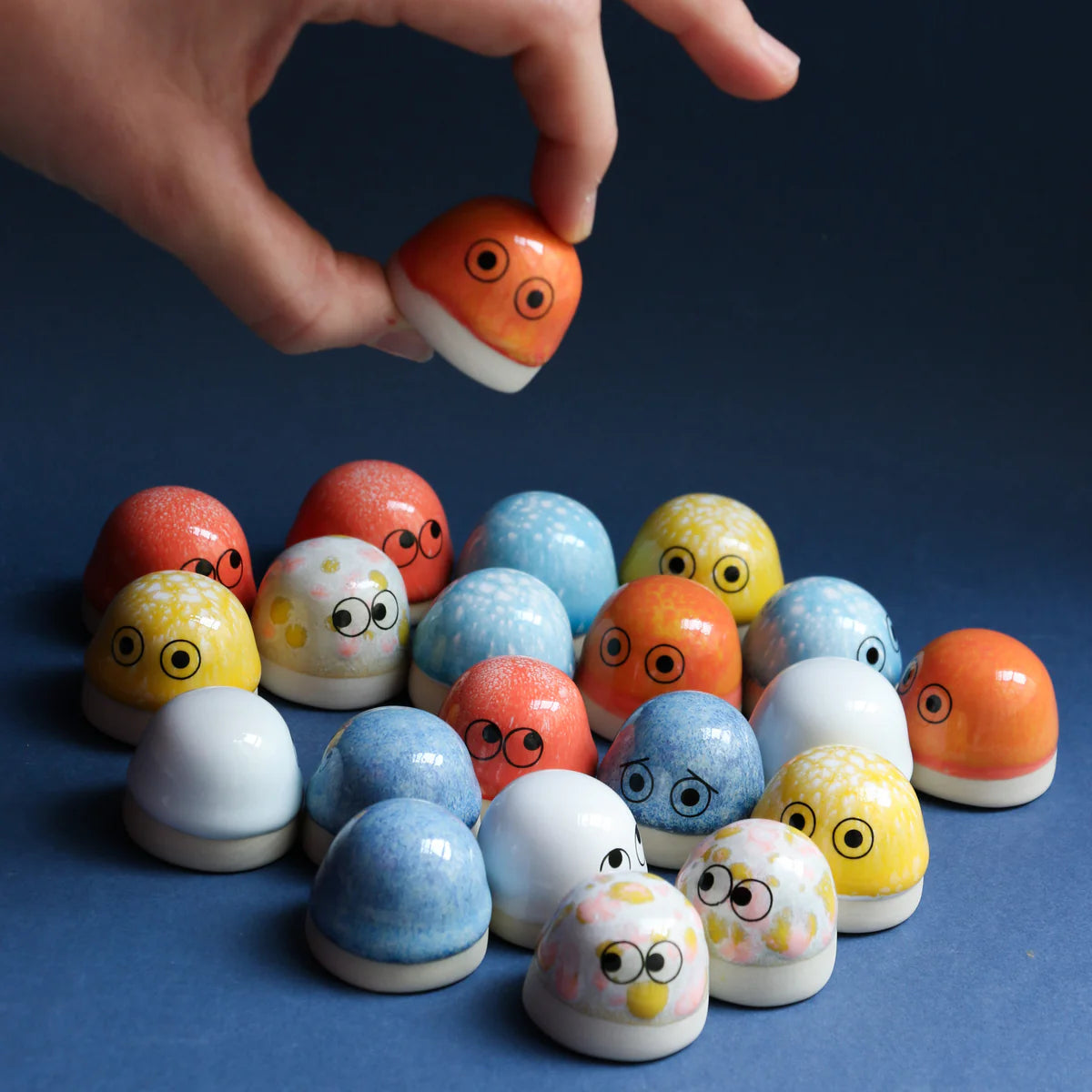Each Familia member is hand-cast in solid, heavy white porcelain. The figurines are glazed in our wide variety of unique hi-fire colours and finally given life with a pair of eyes.
