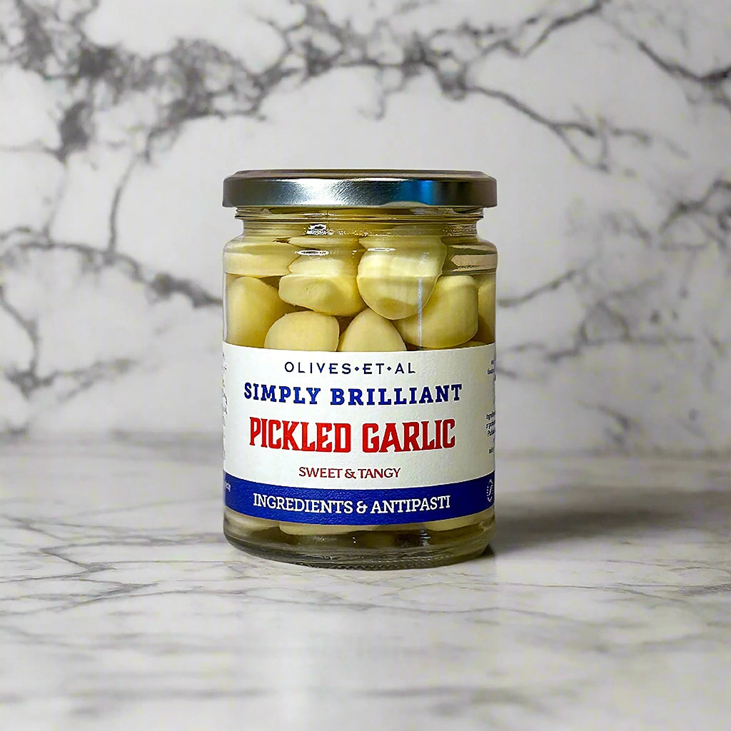 Sweet Pickled Garlic Cloves in Brine. A bit garlicky, but not overpowering — if you're a garlic lover (and we know who you are) then these are just the thing to get everyone crunching!