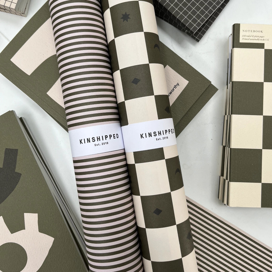 Designed for Christmas but as relevant in Spring or summer, our thin, green and cream striped wrap has been very popular at shows this summer. An all-rounder for any occasion, this wrap matches many of Kinshipped's cards due to the colour-match of the moss green.
